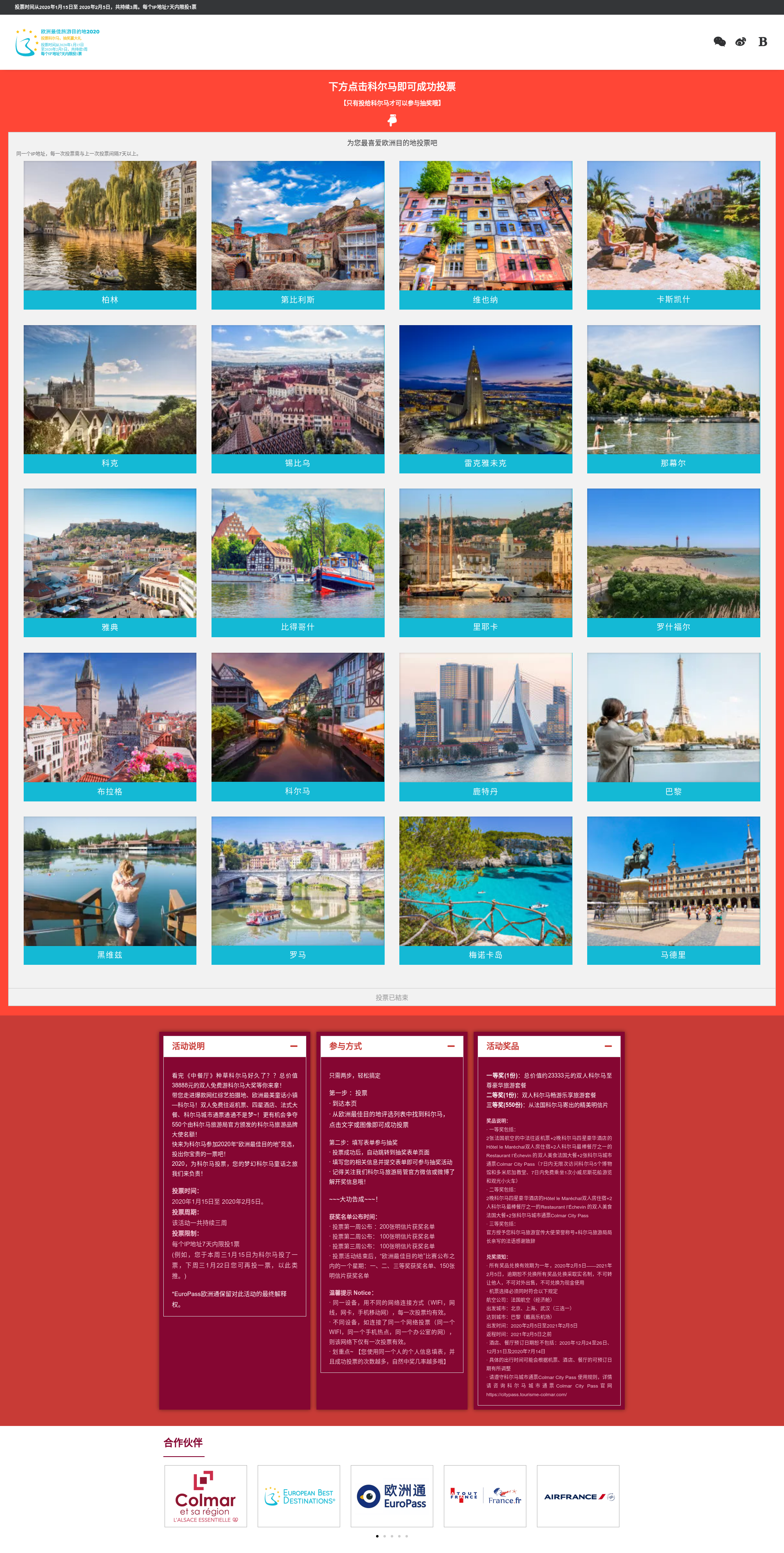 Colmar was voted the most desirable/attractive destination under the entire EU and their constituent sub tourism bureaus for 2020. There was a record number of total votes, 179,723 votes, with the majority of votes coming from China.