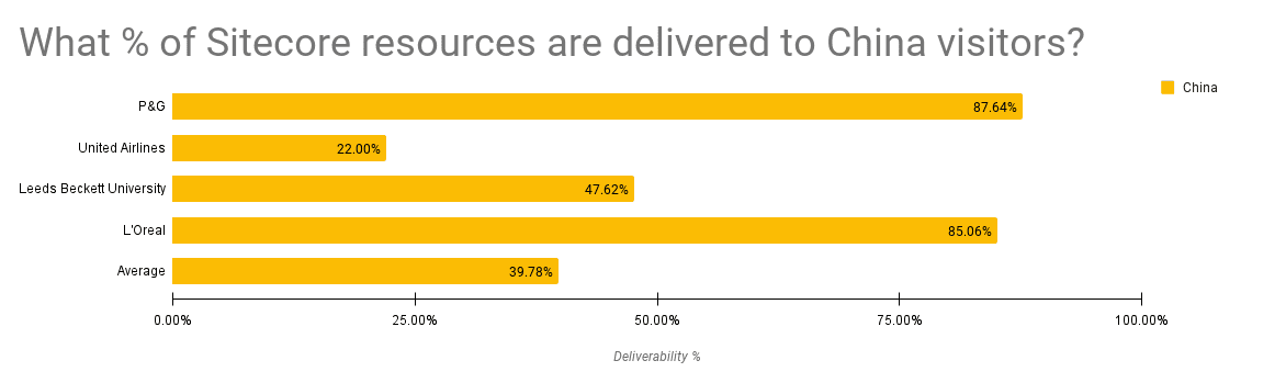 TLDR; Sitecore doesn’t work in China well. Websites built with Sitecore load in 41.9 seconds and on average 2.8x slower in China than elsewhere, not to mention with 61% of web resources lost.