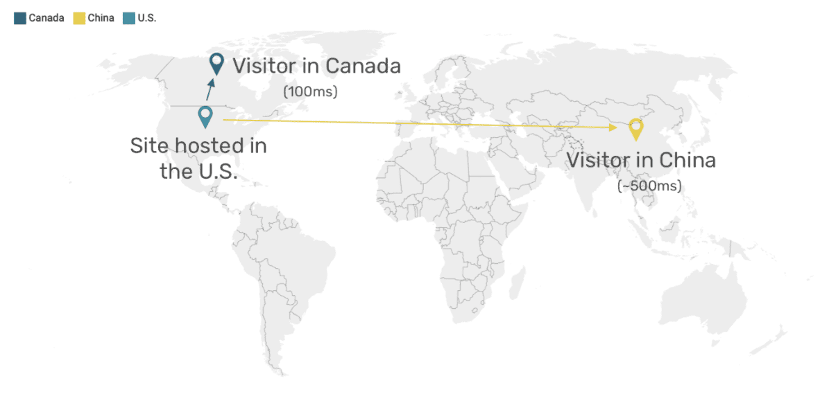 Foreign companies tend to favor hosting their site close to where their developers or headquarters are. Say in the case of U.S. companies, hosting in the U.S. easily translates into a longer loading time elsewhere due to the latency issues. It’s worthwhile to highlight that latency challenges in China are unique to China and not just a factor of distance.