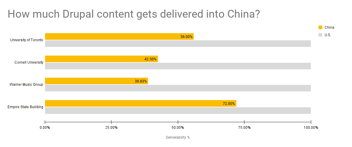 Chances are that most Drupal websites actually appear broken and are mistaken as inaccessible because of technical challenges they have when loading from China.
