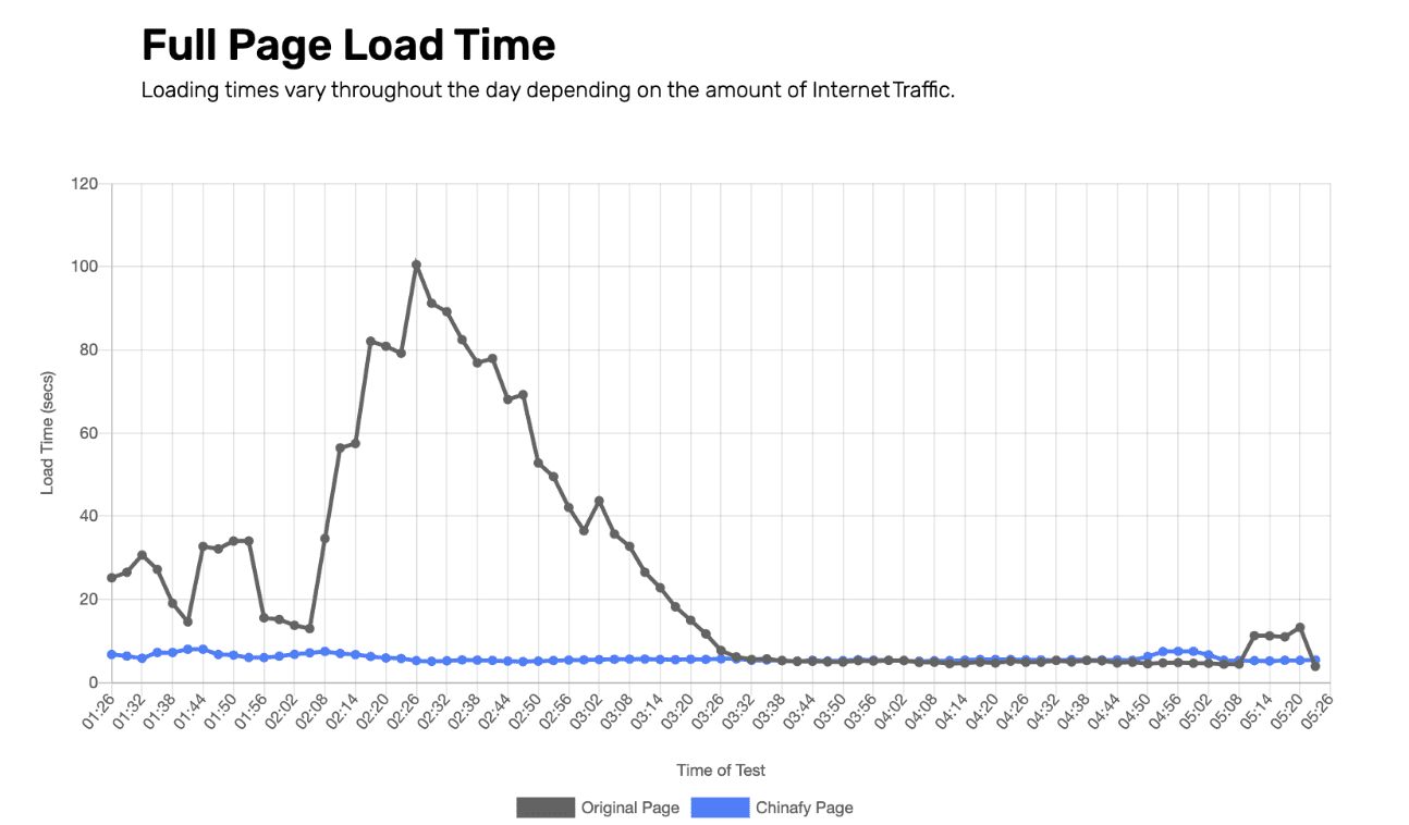 The website took up to 25 seconds to load from various cities in China. That is, if it didn’t time out.