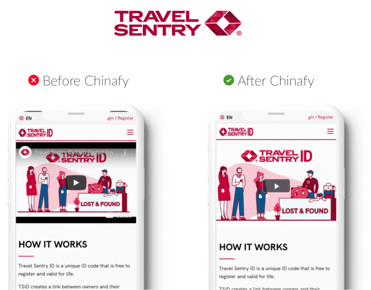 The results are taken from the average of over 80 data points of tsid.com then vs a Chinafy preview of the site in Beijing (see below).