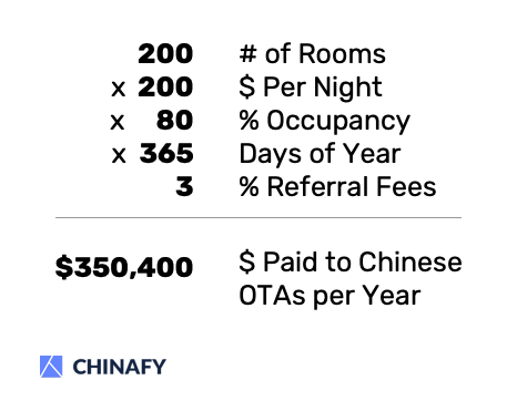 For example: If 20% of travellers are from China, and Hotel has 200 rooms, this is $350k per annum in fees