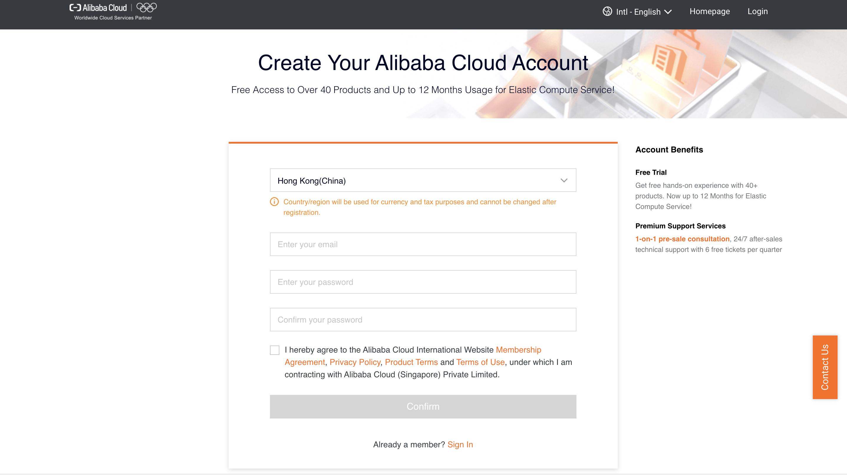 1. Create an Alibaba Cloud account with your email address
