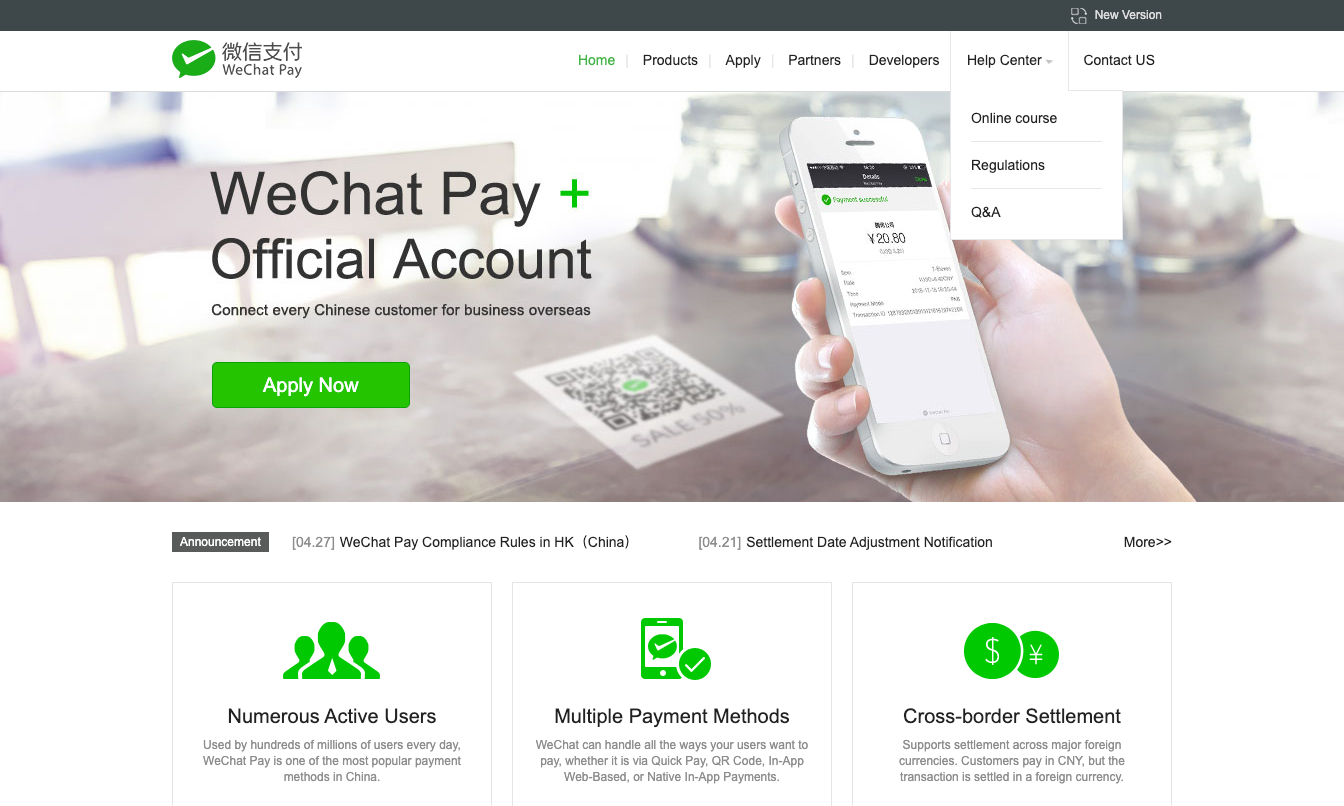 If you have the financial license and want to offer the WeChat pay cross-border payment to your merchants, you may become an Institution Partner.