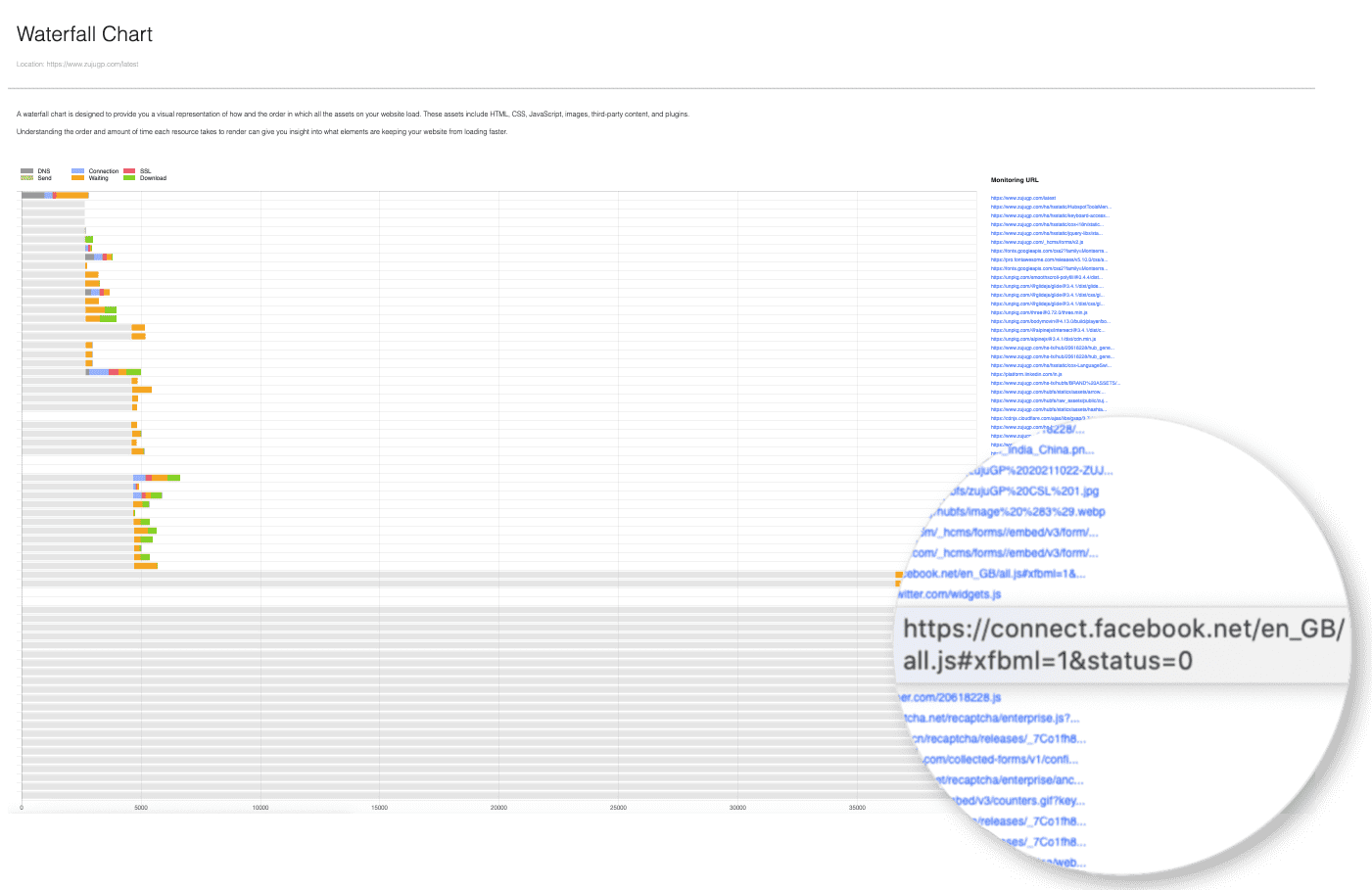 Below is a waterfall chart of the ZujuGP site loaded in China.
