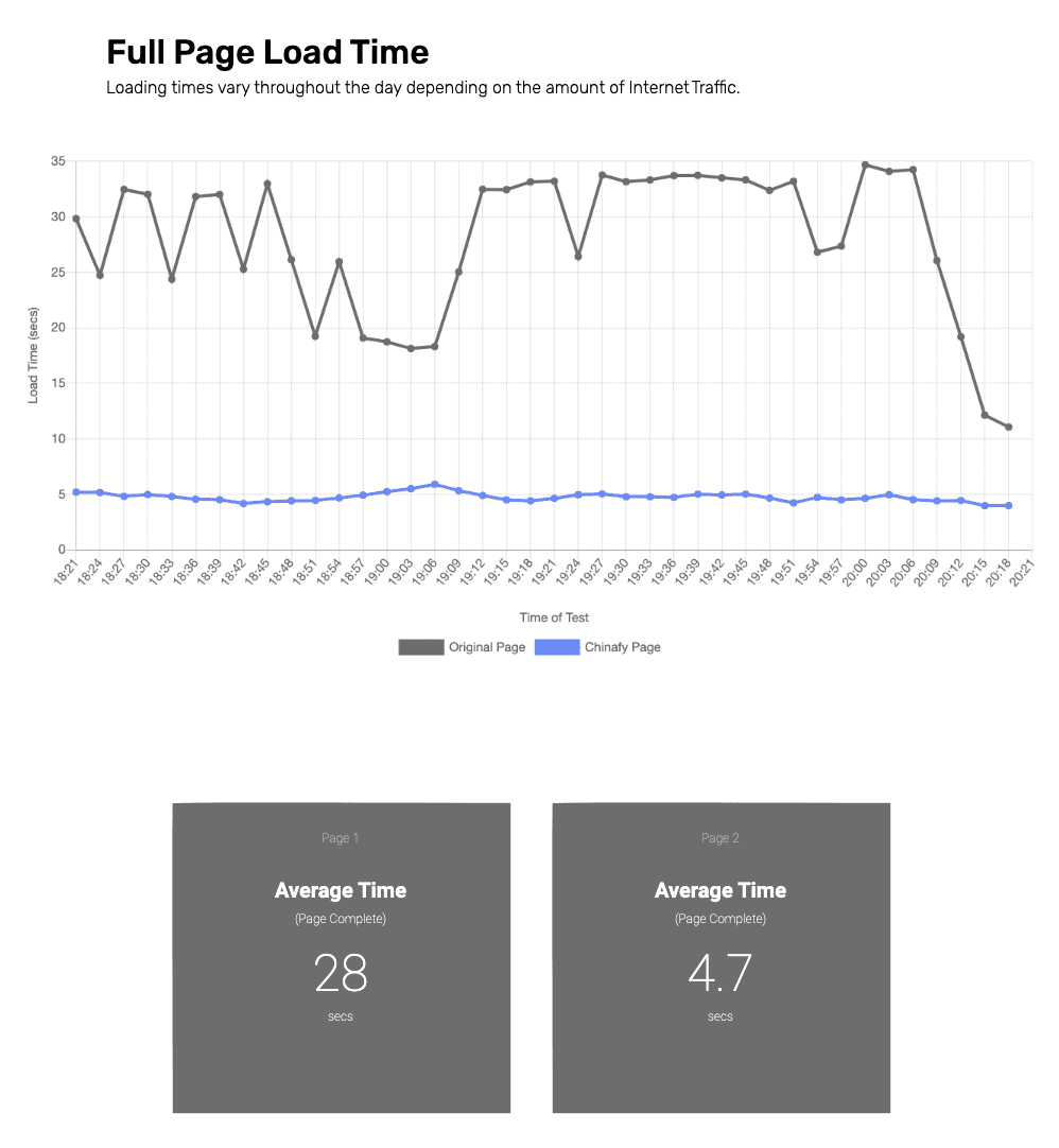 Before Chinafy: 28s average loading time, with great variance