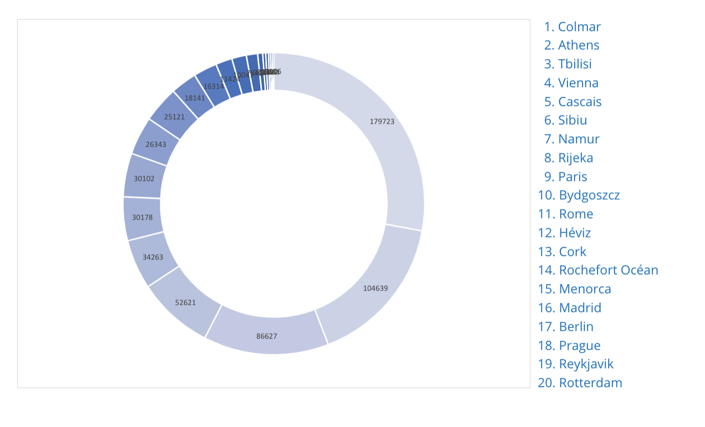 Colmar was voted the most desirable/attractive destination under the entire EU and their constituent sub tourism bureaus for 2020. There was a record number of total votes, 179,723 votes, with the majority of votes coming from China.