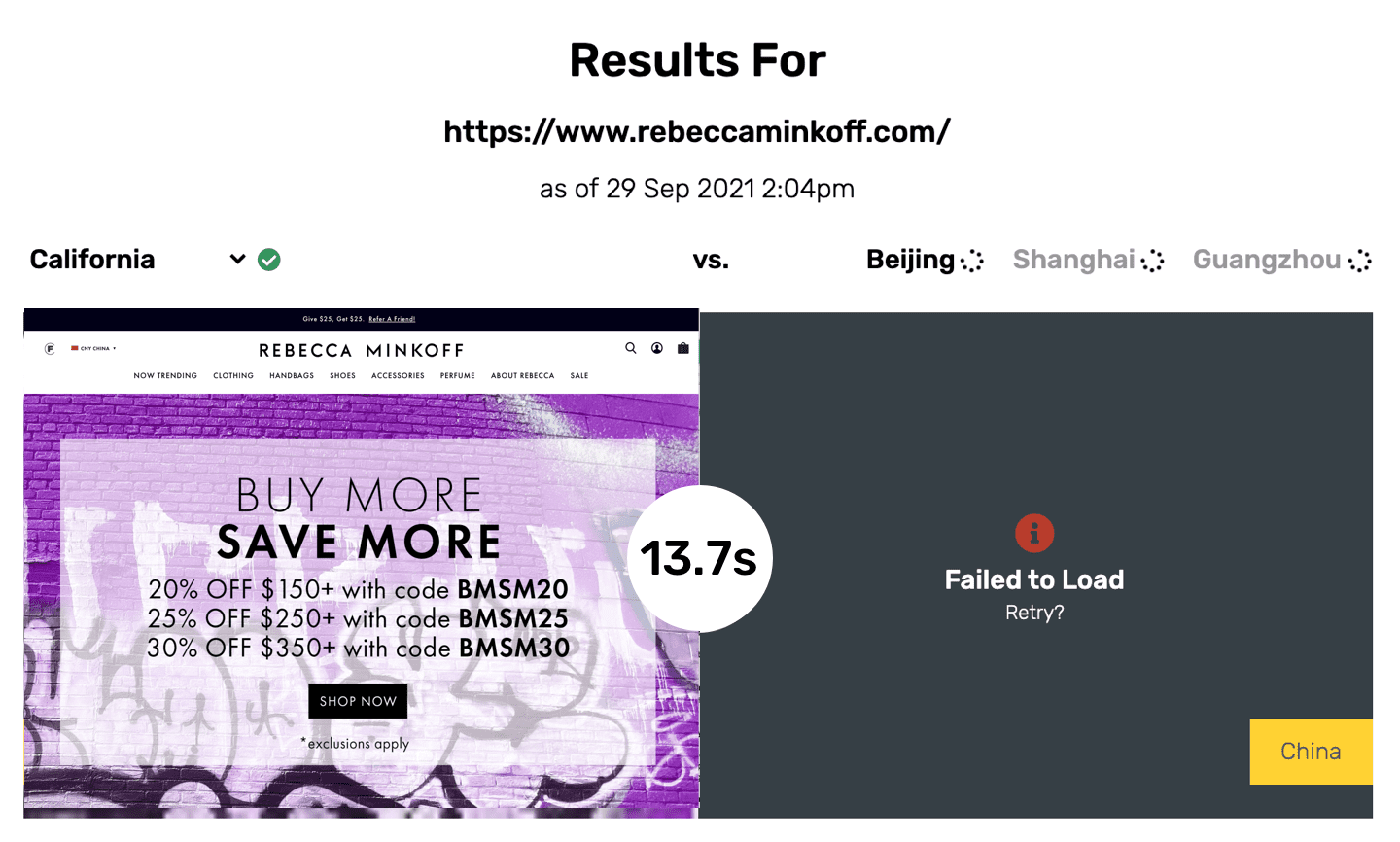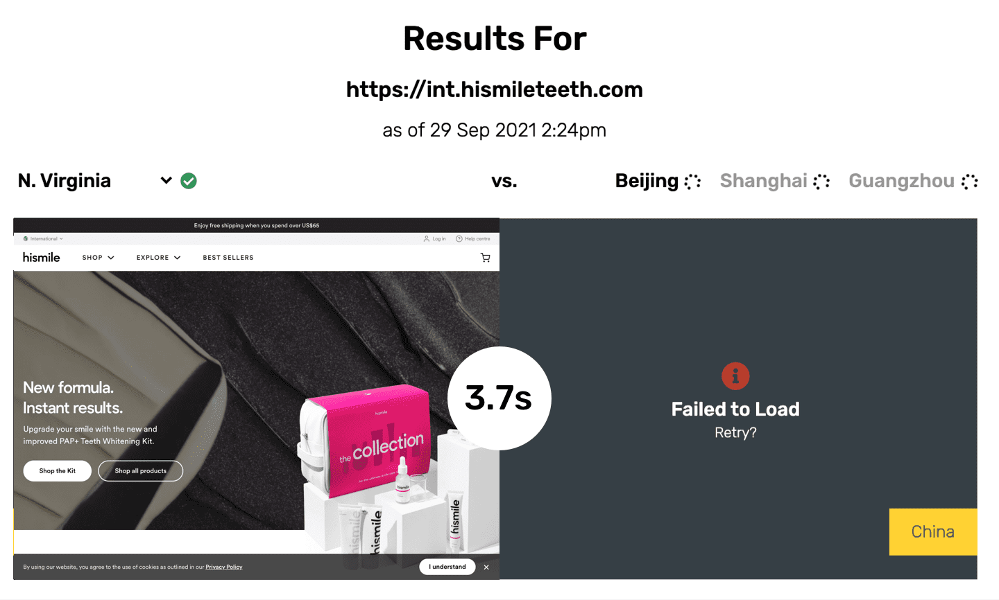 Here are some examples of how some Shopify Plus sites perform in China -