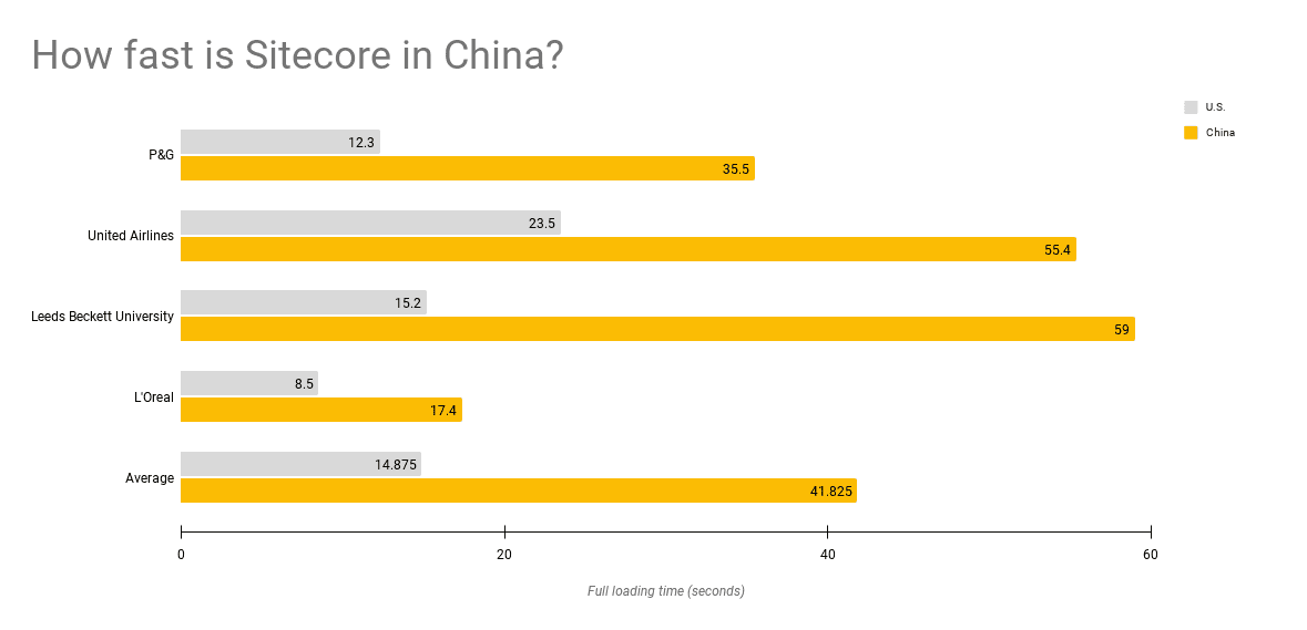 TLDR; Sitecore doesn’t work in China well. Websites built with Sitecore load in 41.9 seconds and on average 2.8x slower in China than elsewhere, not to mention with 61% of web resources lost.