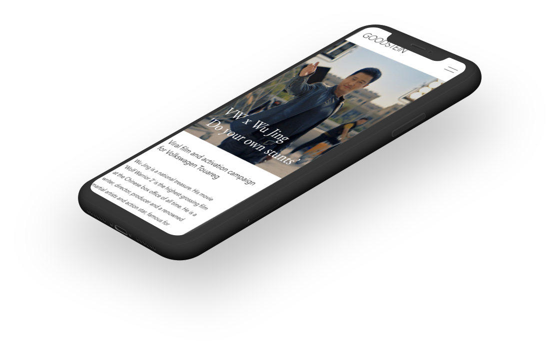 GOODSTEIN is an award-winning creative agency based in Shanghai. Their portfolio includes creative work with Tencent, Volkswagen, Shen Bao entertainment and more.