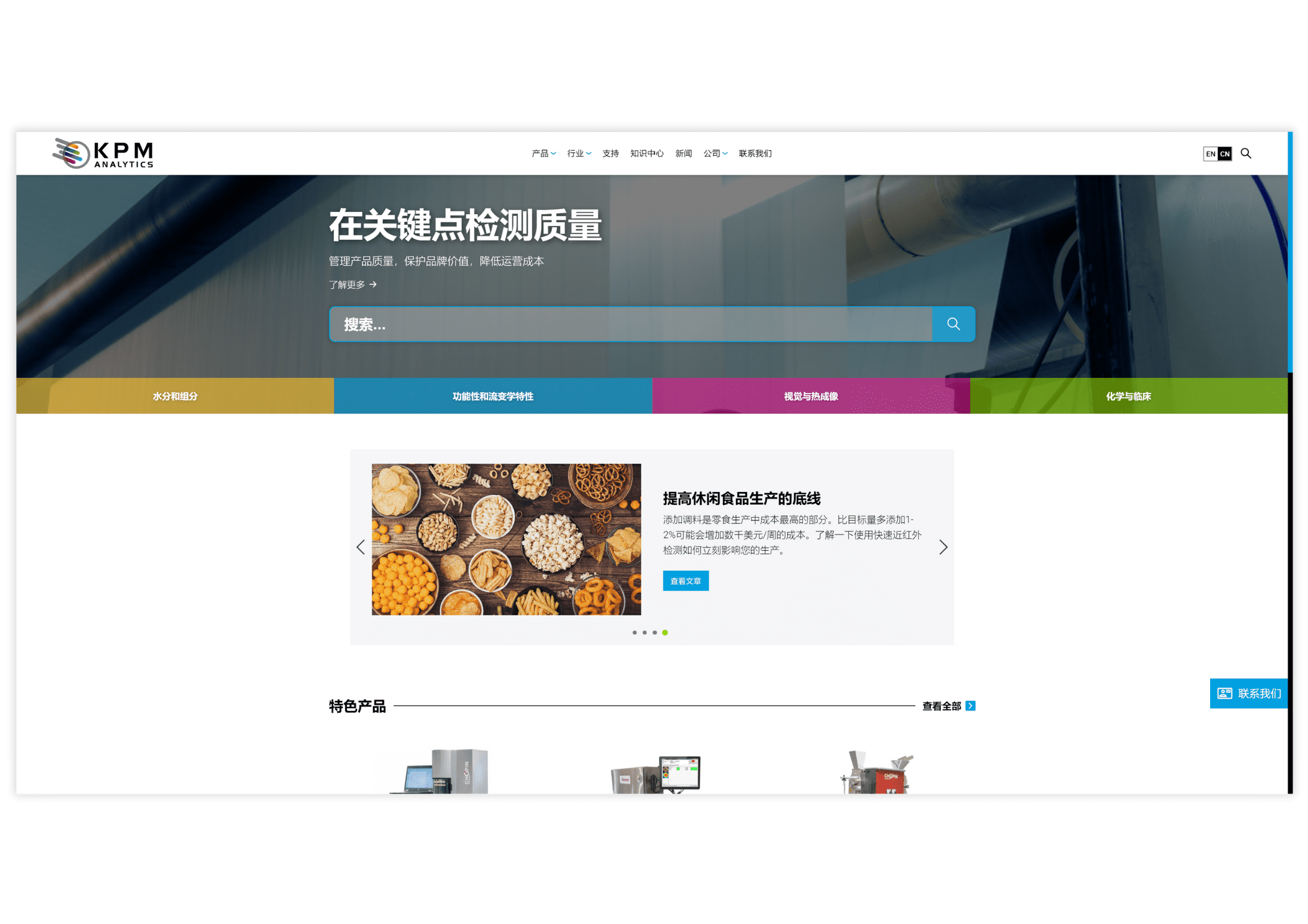 In terms of front-end localization, KPM Analytics has done a great job making its website more accessible to users in China with language options allowing visitors to select between English and Simplified Chinese.