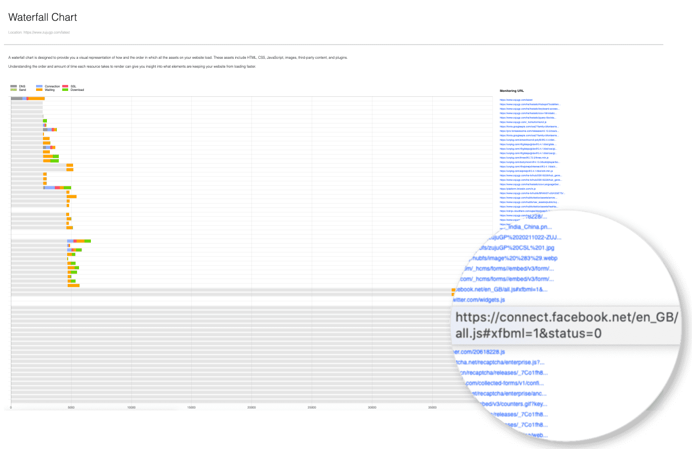 We can use the example below. This waterfall shows when a China visitor attempted to load resources past Facebook trackers, a resource that is blocked in China.