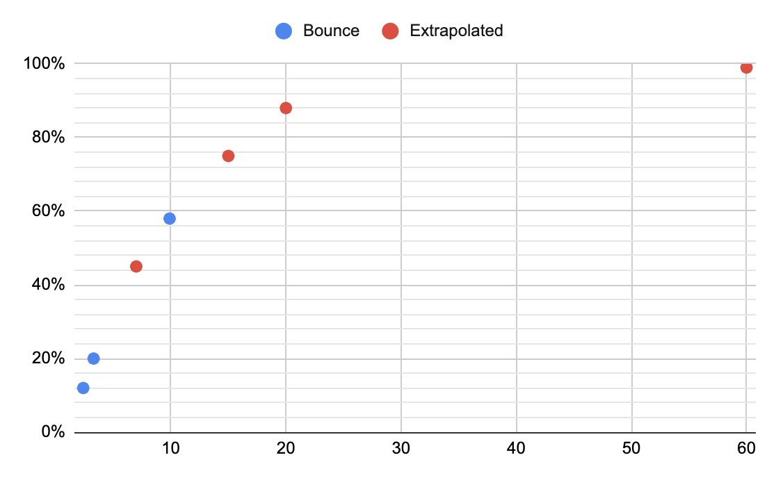 Again, beyond the 10-second mark, as the loading time goes to 60 seconds the deliverability goes to zero, and the bounce rate must go to 100%.
