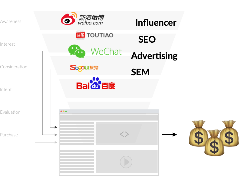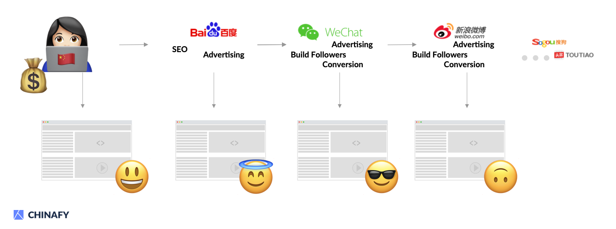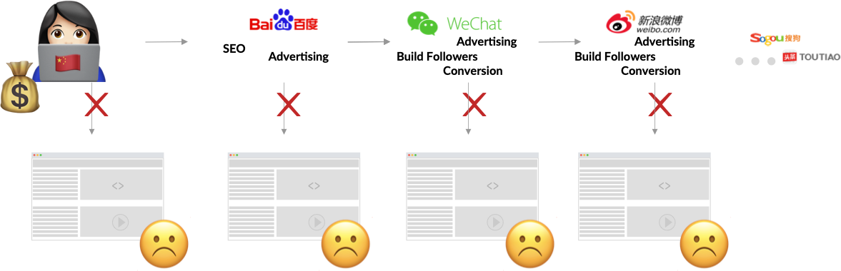 The problem is that the most important part of the funnel - the point of conversion: the website, just doesn't work in China.
