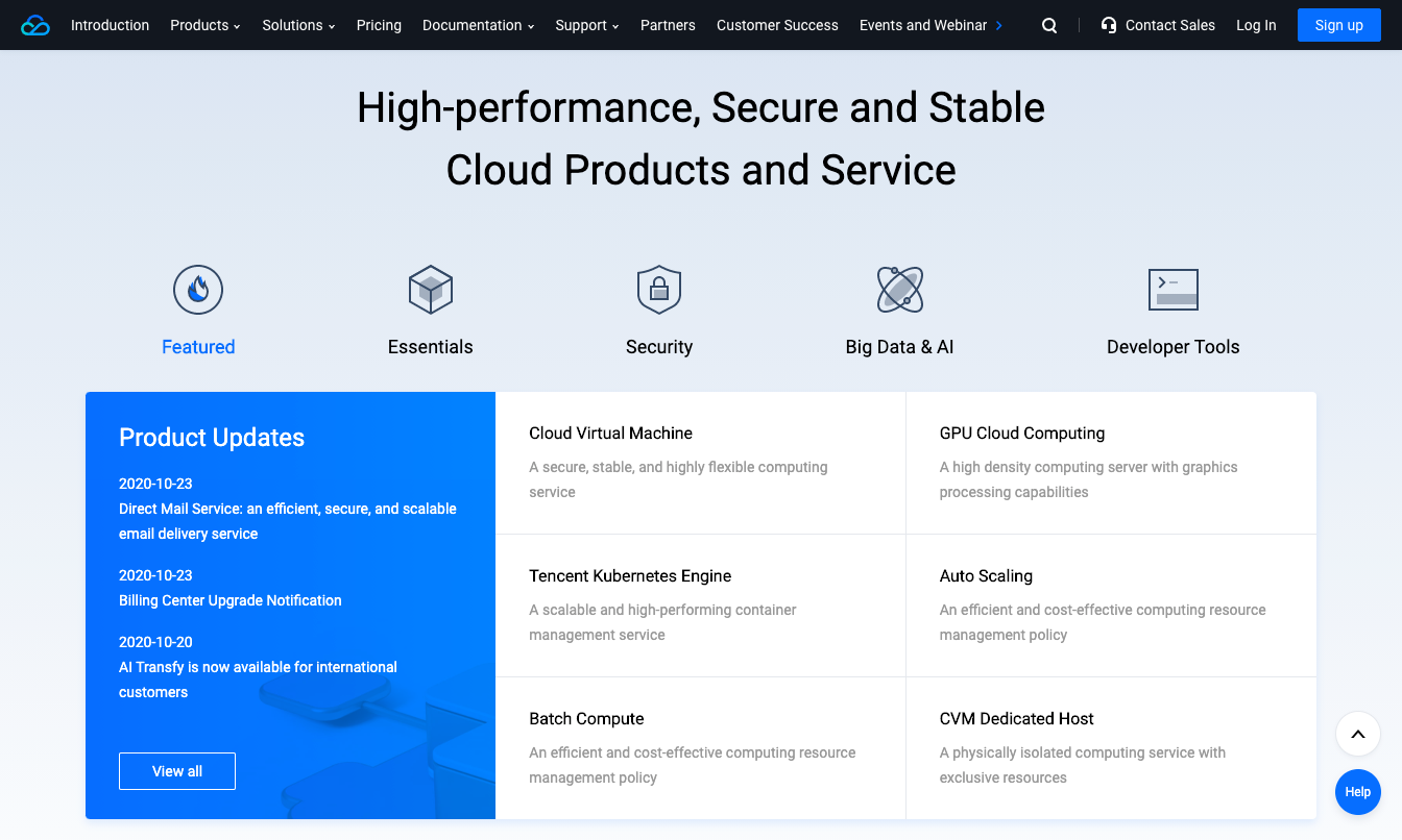 Tencent Cloud is a Tencent’s cloud provider. Leveraging its global infrastructure to provide cloud computing services, Tencent Cloud's core services include Compute, Storage and CDN, Database, and Security.