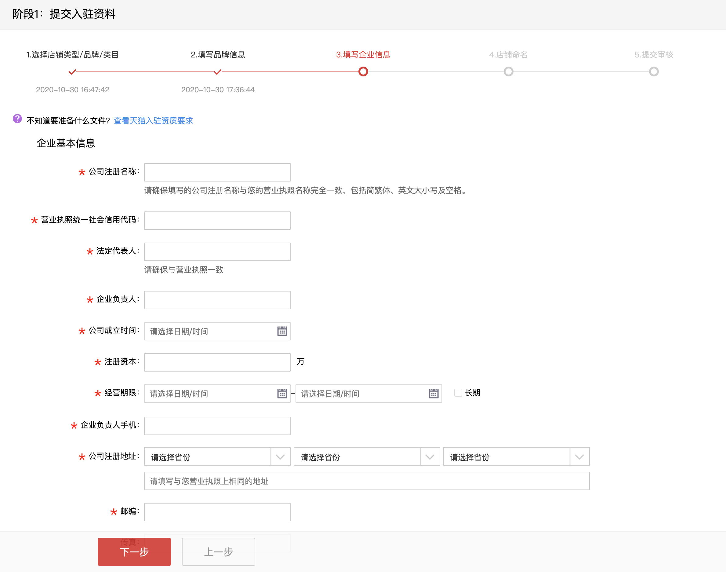 3. Submit business information to Tmall for verification. You're required to describe your business as detailed as possible to increase your chance of approval, Tmall asks that you provide the following information: