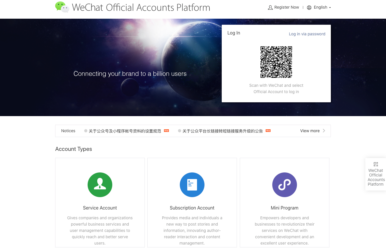 Not sure which you should sign up for? Refer to WeChat's comparison of these enterprise accounts.