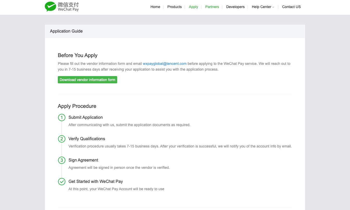 If you have the financial license and want to offer the WeChat pay cross-border payment to your merchants, you may become an Institution Partner.